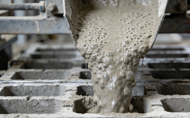 - Bột nhôm Addition: Sau khi tạo thành hỗn hợp sệt, bột nhôm được thêm vào, bắt đầu phản ứng làm cho hỗn hợp sệt nở ra. Bước này phải nhanh chóng để ngăn chặn sự hình thành khí sớm.